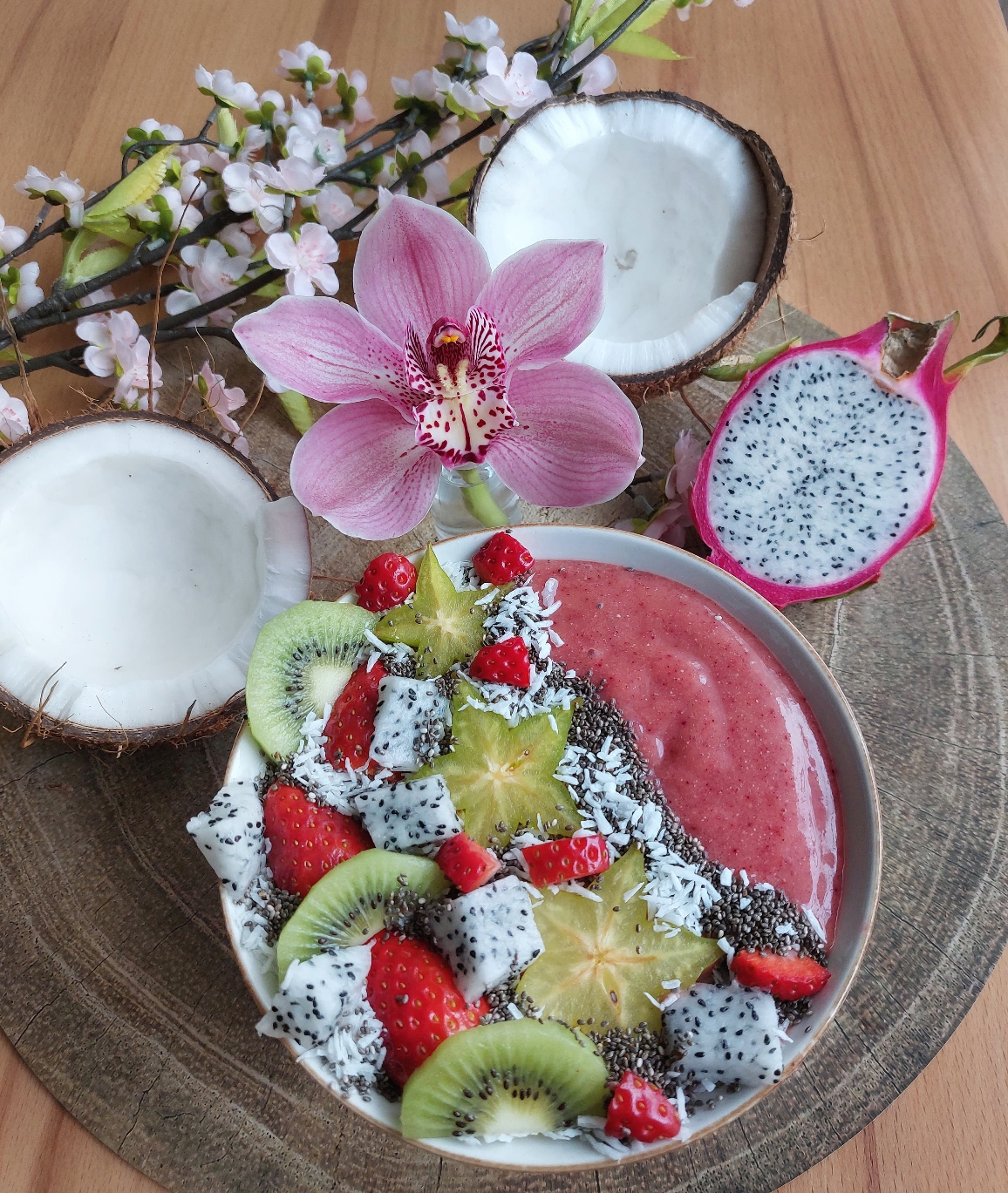 Topping Kiwi Sternfrucht Pitaya Kokosraspeln Chiasamen